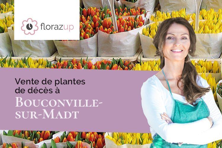 Vous ne pouvez pas venir à Bouconville-sur-Madt (Meuse/55300) pour l'enterrement d'un de vos proches, livrez des fleurs d'enterrement rapidement par un fleuriste de Bouconville-sur-Madt (Meuse/55300). La marketplace Florazup propose des bouquets, croix, coussins, gerbes main, coeurs, etc pour des obsèques avec des tarifs et des couleurs différentes. La livraison des fleurs sera faite à l'endroit demandé (funérarium, église de Bouconville-sur-Madt (Meuse/55300), domicile du défunt) ; pour livrer à Bouconville-sur-Madt (Meuse/55300) une couronne le jour des obsèques, il faudra compléter lors de votre achat les éléments suivants : le lieu exact de la crémation, le jour et l'horaire de l'enterrement. Pour info, les partenaires fleuristes composent leur gerbe d'enterrement seulement avec des fleurs et plantes fraîches choisies. Vous trouverez ci-après quelques gerbes de fleurs que Florazup propose en - de 4h à Bouconville-sur-Madt (Meuse/55300).