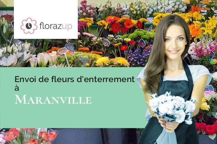 Les fondateurs de Florazup ont une véritable determination de travailler avec des artisans fleuristes de Maranville (Haute-Marne/52370) afin d'assurer une meilleure qualité des bouquets d'obsèques commandés. Le professionnel de la fleur qui fera la composition de fleurs s'occupera aussi de la livraison au domicile de la personne décédée. Le professionnel de la fleur est défini par l'équipe Florazup ; il est nécessairement à deux pas du lieu de la livraison (donc de Maranville (Haute-Marne/52370) ou du village le plus près).