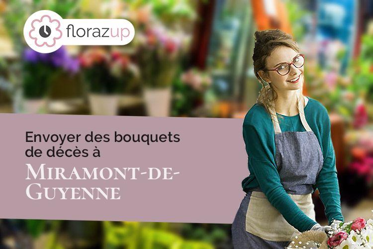Pour une belle qualité des gerbes d'enterrement livrées, la livraison sera faite par le professionnel de la fleur le plus proche de Miramont-de-Guyenne (Lot-et-Garonne/47800). Nos bouquets de fleurs d'enterrement sont livrables tous les jours de la semaine et en - de 4h.