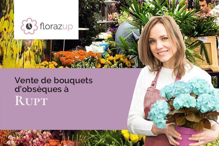 Il est traditionnel en France métropolitaine de faire passer un message d'amour au défunt avec des fleurs d'obsèques. Faire livrer des bouquets d'enterrement à Rupt (Haute-Marne/52300) pour des obsèques permet d'assurer un certain soutien à la famille. Chaque création florale achetée sur www.florazup.com pour Rupt (Haute-Marne/52300) peut être personnalisée en mettant un beau texte de condoléances et également en achetant un ruban.