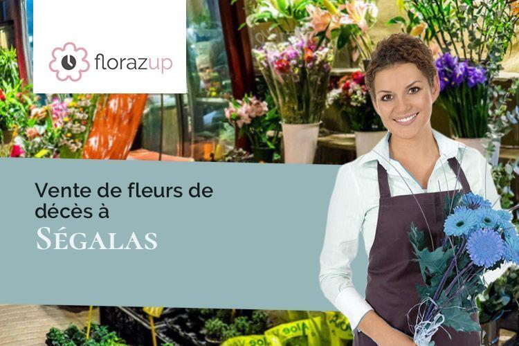 Les créateurs de la plateforme ont une véritable determination de faire travailler des fleuristes de Ségalas (Lot-et-Garonne/47410) afin d'assurer une bonne qualité des compositions de fleurs d'obsèques commandées. Le partenaire fleuriste qui fabriquera la composition de fleurs s'occupera aussi de la livraison au funérarium. Le partenaire fleuriste est sélectionné par nos soins ; il est obligatoirement près de l'endroit de la cérémonie de deuil (donc de Ségalas (Lot-et-Garonne/47410) ou de la ville la plus près).