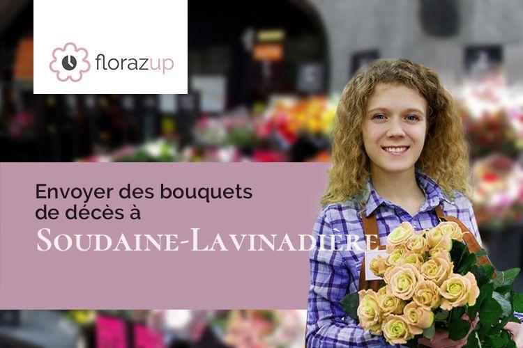 Vous ne pouvez pas aller à Soudaine-Lavinadière (Corrèze/19370) pour les funérailles d'un ami, livrez des fleurs de décès sans difficulté par un artisan fleuriste de Soudaine-Lavinadière (Corrèze/19370). Florazup propose des compositions, couronnes, raquettes, plantes... pour un enterrement avec des prix et des coloris variés. La livraison de la composition sera réalisée à l'endroit demandé (funérarium, église de Soudaine-Lavinadière (Corrèze/19370), votre domicile) ; pour livrer à Soudaine-Lavinadière (Corrèze/19370) une raquette le jour des obsèques, vous devrez mettre lors de votre achat les choses suivantes : le lieu précis de l'enterrement, la date et l'horaire de l'enterrement. Pour information, les partenaires fleuristes composent leur gerbe de décès seulement avec des fleurs fraîches sélectionnées. Vous trouverez ci-après quelques compositions florales que la marketplace propose en - de 4 heures à Soudaine-Lavinadière (Corrèze/19370).