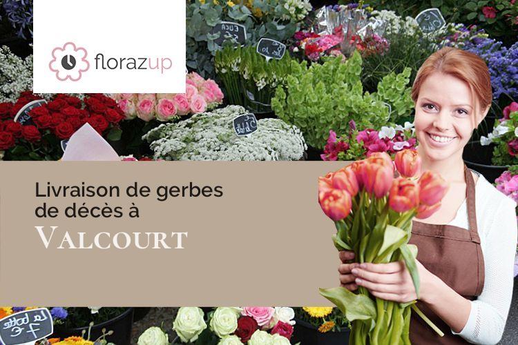 Impossible d'aller à Valcourt (Haute-Marne/52100) pour les funérailles d'un être cher, faites livrer des fleurs de deuil sans difficulté par un fleuriste de Valcourt (Haute-Marne/52100). La marketplace Florazup propose des compositions, couronnes, raquettes, plantes... pour des funérailles à des tarifs et des couleurs différentes. La livraison de la composition de fleurs sera réalisée au lieu demandé (funérarium, église de Valcourt (Haute-Marne/52100), sépulture) ; pour livrer à Valcourt (Haute-Marne/52100) un bouquet le jour des obsèques, il faudra mettre lors de votre achat les informations suivantes : l'endroit exact de la crémation, la date et l'heure. A savoir, les artisans fleuristes fabriquent leur gerbe de deuil seulement avec des fleurs et plantes fraîches choisies. Vous trouverez ici quelques gerbes de fleurs que la plateforme propose en 4h à Valcourt (Haute-Marne/52100).